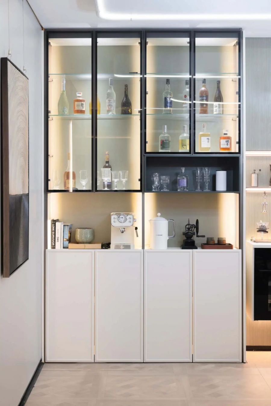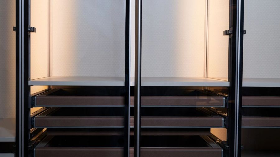 友邦筑家百變柜在整體結(jié)構(gòu)的穩(wěn)固性與產(chǎn)品細(xì)節(jié)體驗(yàn)上也精益求精。柜體和墻面鋁材連接,門板鉸鏈與立柱連接,層板整條鋁合金連接,長久使用依然牢固安全。柜體與墻地?zé)o縫銜接,配合門板密封防塵條,有效阻隔灰塵侵入。內(nèi)置線燈,開門即亮,光線柔和均勻照亮收納區(qū),取物一目了然。